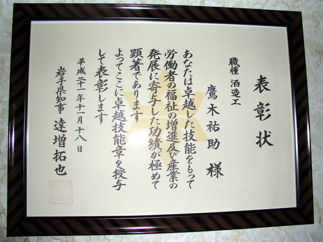 鷹木祐助只比農口老爺爺小了6歲,現年 78 歲,來頭不小,是一名非常受到業界敬重的南部杜氏,也是南部杜氏的代表人物,同列於南部杜氏代表還有「磯自慢酒造」的多田信男先生,其聲望與實力可見一班,目前鷹木爺爺仍擔任岩手縣紫波町「杜氏連合會會長」。