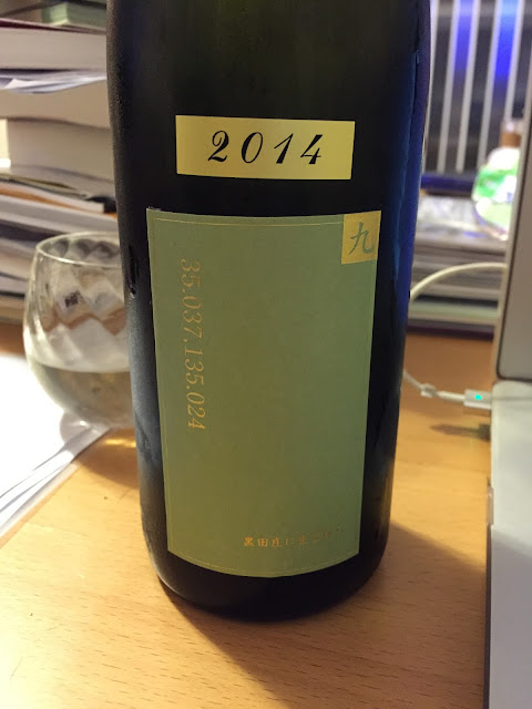 黑田庄山田錦是萬乘酒造為了保障品質的特別選地契約耕作,這家曾經打入巴黎米其林的酒造,為了把持品質下的功夫鐵定不少,瓶身上的數字 35.037, 135.024 就是酒米種植的經緯度(35°02’13.2″N 135°01’26.4″E)順手用數字查了 Google 地圖,輕敲鍵盤,大片的綠野空拍照即映入眼簾,跟這瓶酒的關係好似又更親近些。