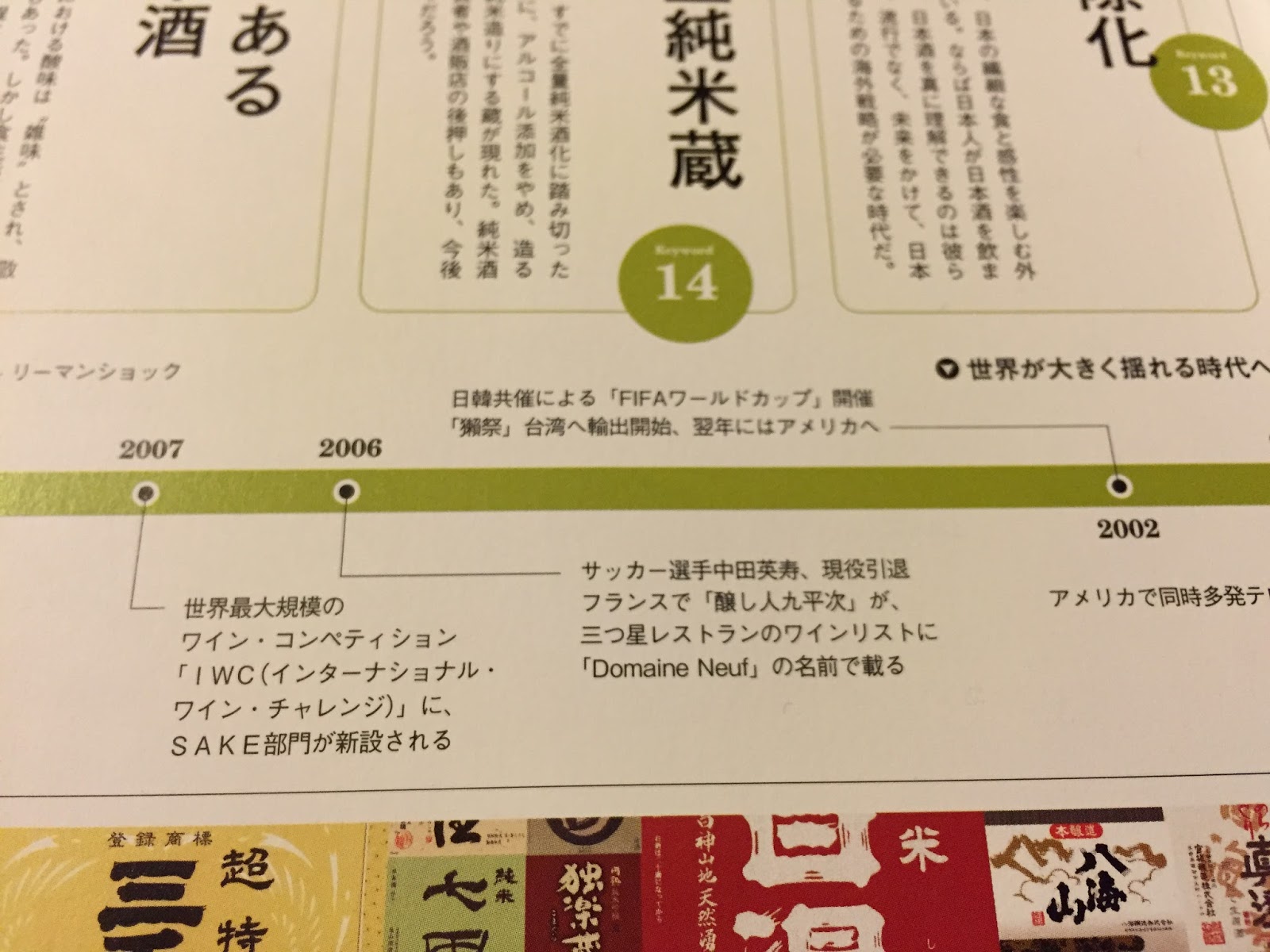 千禧年則是日本酒國際化的開端,漸漸在世界舞台上展露頭角,2002年時,獺祭首次輸入台灣,隔年才輸入美國;2006 年釀人九平次以「Domaine Neuf 」(九號酒莊)之名,打入巴黎米其林三星餐廳;2007 年世界最大酒類競賽 IWC 增設了SAKE 部門,日本酒出現各式各樣不同於傳統的行銷模式,新穎的釀造實驗,充滿花果與酸味的酒款紛紛出現。