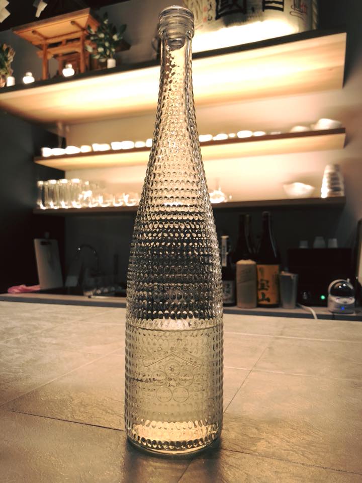 瓶身的設計容易讓人產生特殊聯想,但其實這顆粒排列的瓶身意義其來有自,由下至上, 是從未精米的玄米到精米度 40 不同尺寸的酒米排列,是十分具有釀造意義的設計。