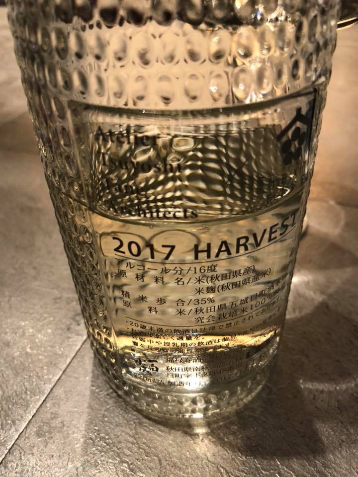 2017 Next 5 Harvest 使用秋田縣五城目研究會町栽種的美鄉錦,精米步合 35,一回火入來製作。 Harvest 有著清爽蘋果、蜜瓜、白桃類的氣息,入口甜美感的厚度略強,好在乳酸感也有著類似等級突出,稍微平衡,中段輕微的辛口感剎那浮現,尾部帶著些許乳酸與草本略苦的韻味。雖說今年是一白水成福祿壽酒造主導的作品,入口卻不禁仍讓人連結起新政慣有的層次與酸度風格。