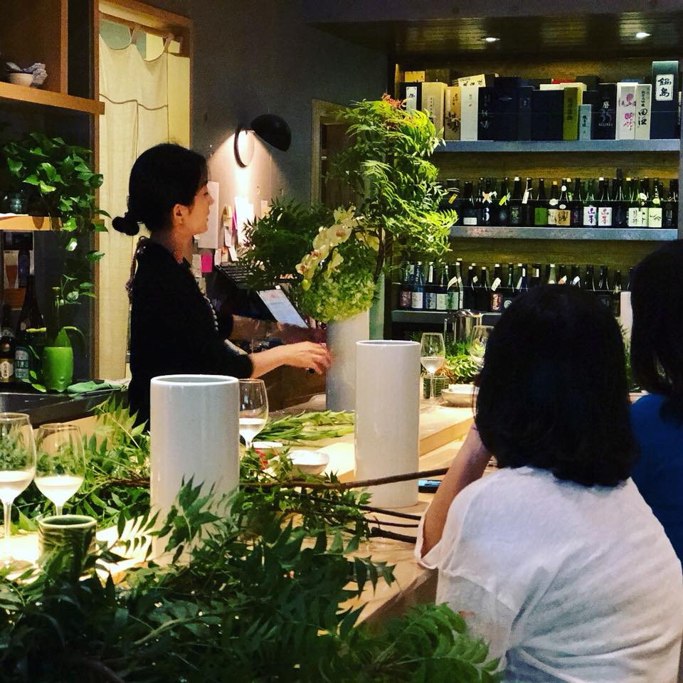 Sophie 是台北知名花坊主管,對於歐式與日式花藝都鑽研甚深,也是日本三大花藝流派草月流的師範,因為老師同時也非常喜歡日本酒,所以才特別進行跨界合作。