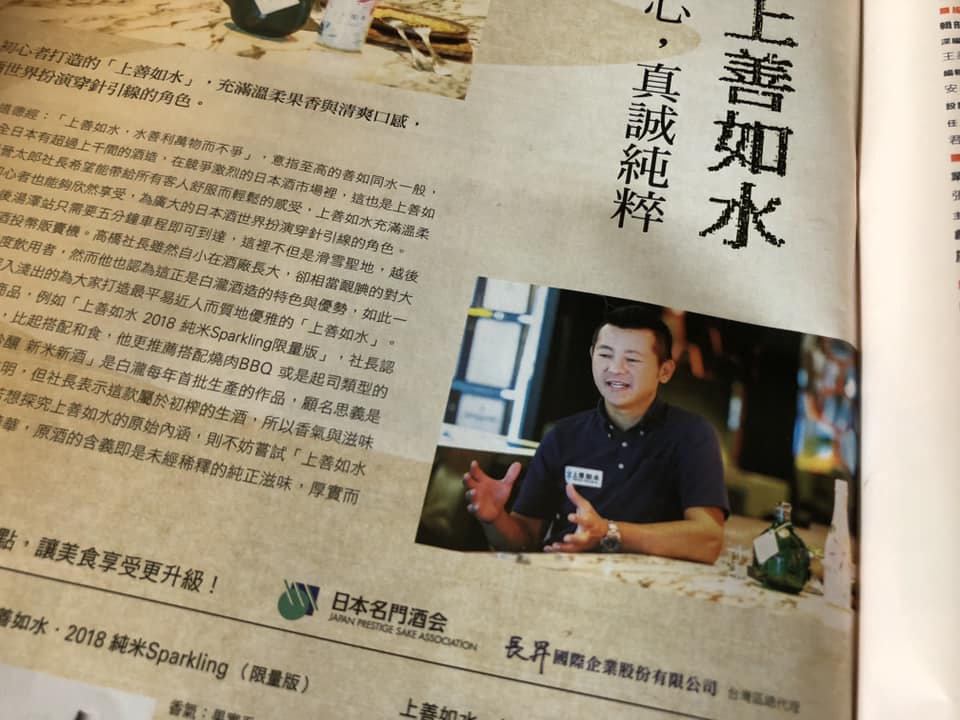 日本國內擁有上千家酒造,每個酒造家族都需要面臨接班與新市場的挑戰,對各自的商品也都各自擁有其定位與眼光。來自新潟的「上善如水」是台灣非常熟悉的品牌,酒質風格如其名,清爽淡雅帶著微果香。