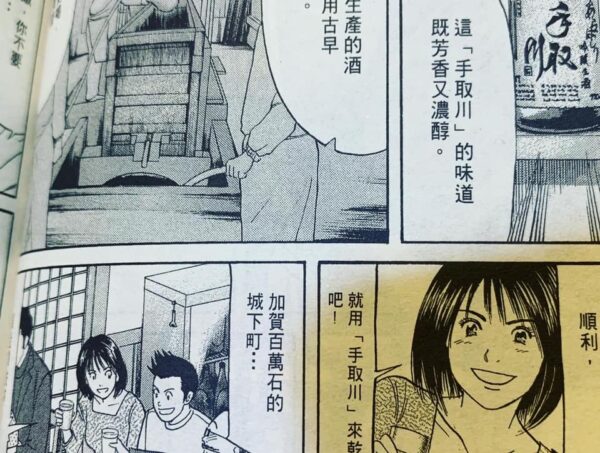在書櫃翻出這本老漫畫,是日本2002年初版的作品,裡頭曾經提到石川縣的這家吉田酒造,講「手取川」可能更多人知道。