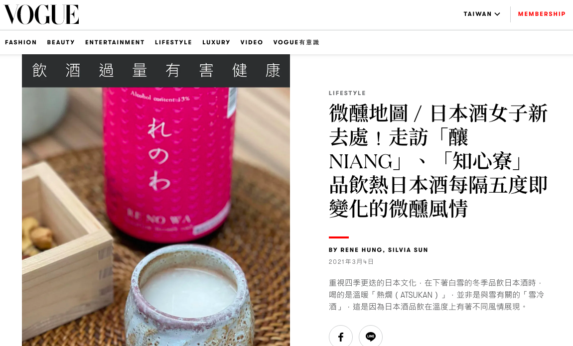 【微醺地圖/日本酒女子新去處!走訪「釀NIANG」、「知心寮」品飲熱日本酒每隔五度即變化的微醺】風情 : 全文連結 由此入