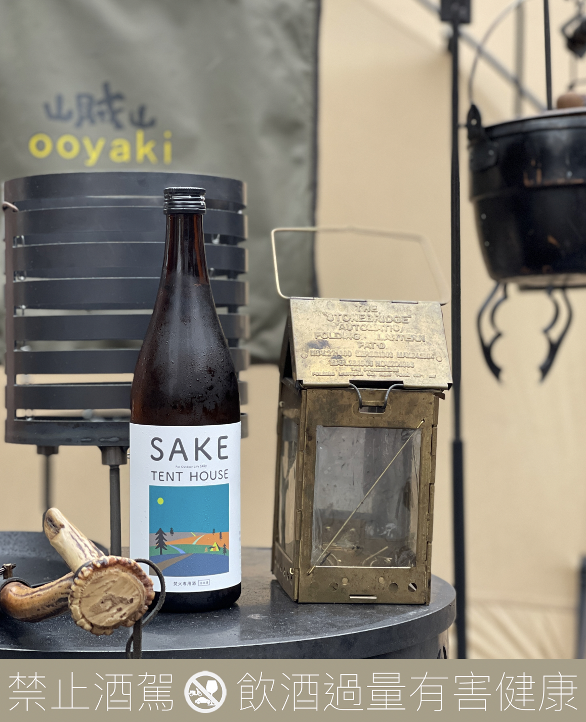 醉鯨與北海道小樽酒販「高野」合作推出「與營火共存的日本酒」,清爽的青蘋果與柑橘香氣,單飲時帶有本釀造的俐落切口,釀造原酒使用了純米大吟釀等級的作品,因此結構品質相當穩定,可以直接把酒裝在不銹鋼露營碗裡加熱來喝,其特別搭配煙燻香類型的食物,木炭野炊的肉類或蔬菜非常相合。