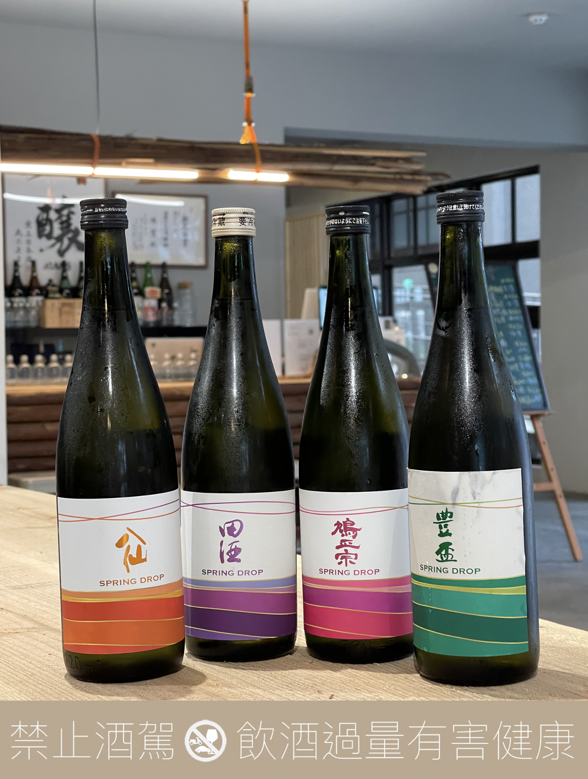 AQE 團體的首發作品「Spring Drop」組合,皆使用青森縣的招牌酒造好適米「華吹雪」釀造,僅在全國特約店流通,青森縣內也僅23間專賣店能販售。
