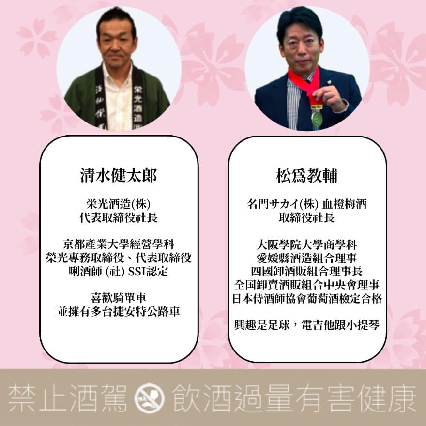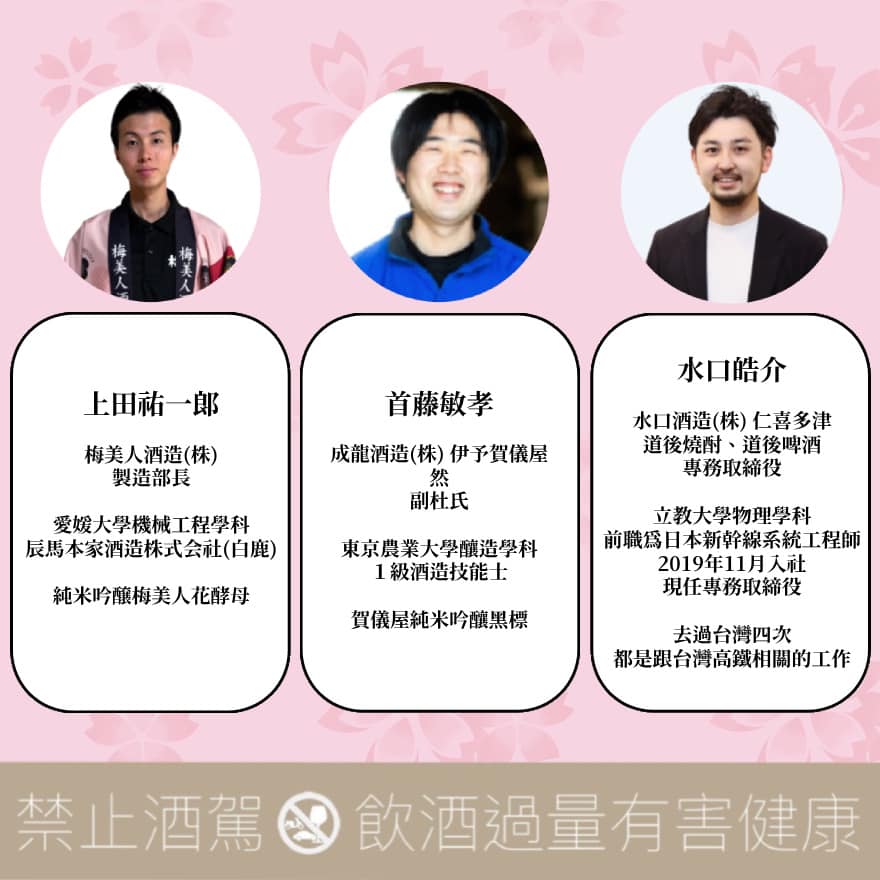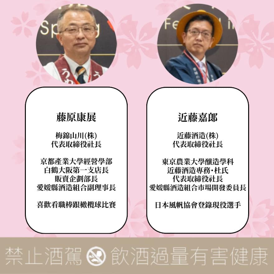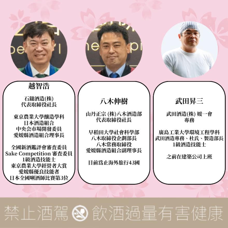 由愛媛縣酒造組合會長 — 越智浩(石鎚酒造)領隊,帶來22品來自全愛媛不同酒造的花酵母作品。
