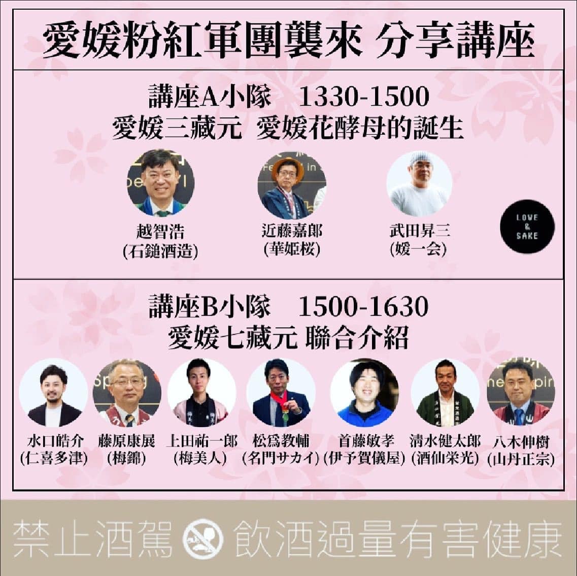 粉紅軍團十位藏元的講座分為 A,B 兩場