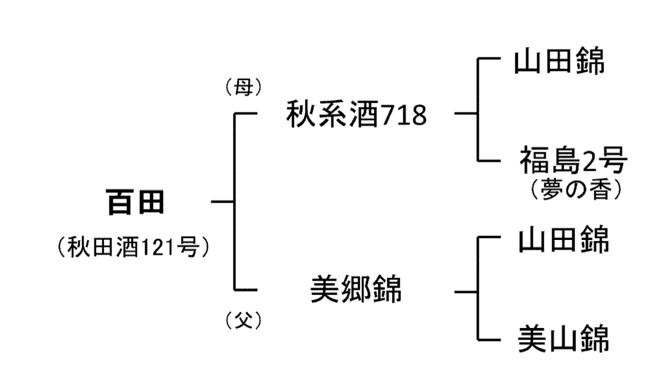 百田研發始於2010年,以「秋系酒718」為母系、「美郷錦」為父系人工交配而成,而秋系酒178 來自夢之香與山田錦,美鄉錦則來自山田錦與美山錦,從2010年開始到2018年發表耗費了九年漫長的選拔時間,要育成新品種酒米實在非常不容易。