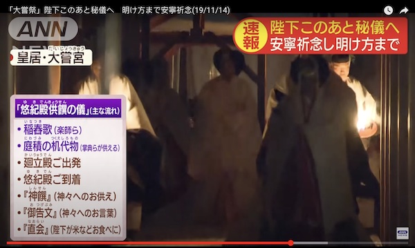 德仁天皇即位的大嘗祭過程,圖片來源:ANN NEWS Youtube 頻道