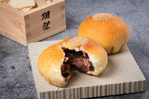 「獺祭あんぱん」(獺祭紅豆麵包),麵團中同樣也使用了獺祭的酒粕,紅豆餡的部分採用相當出名、深具口碑的北海道十勝產的「大粒大納言小豆」。淡淡酒粕香氣的麵團,包裹著帶有優雅豆沙味的紅豆餡,口感溫潤柔和,值得一品!