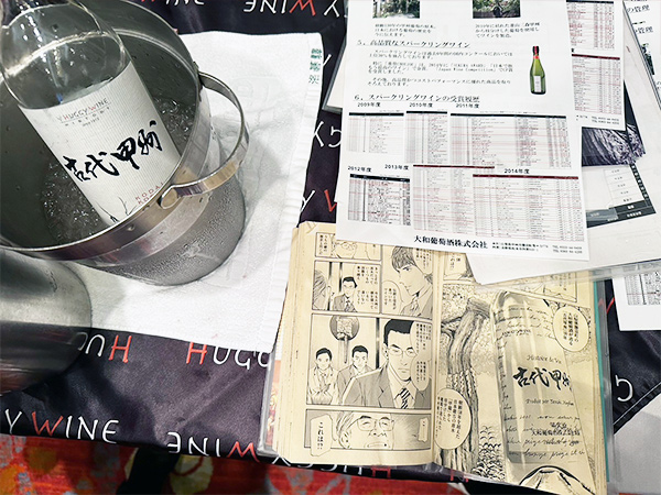 這次展覽會上,大和葡萄酒帶來了出現在日本人氣漫畫《神之雫》中的「古代甲州」。本款使用日本政府指定文化財百年老樹「甲龍」的分枝栽種所生的甲州葡萄所釀製而成,具有甲州葡萄特有的清爽酸度,以及柔順淡雅的香氣,搭配日式料理也適合,喝起來感覺是新手也能輕鬆上手的酒款。