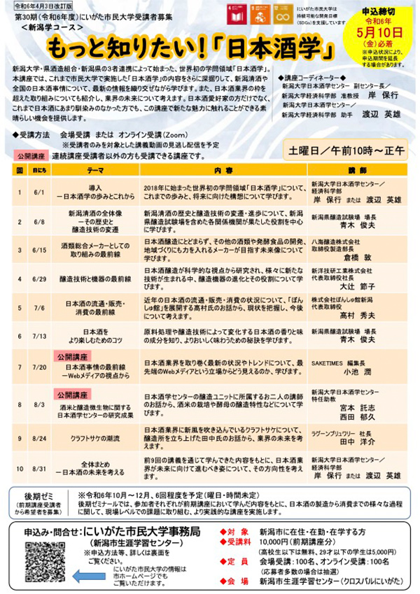 課程詳情(名額、學費、報名方式等):https://sake.niigata-u.ac.jp/3857/