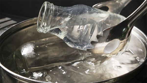 🔺請注意!有些玻璃瓶的較不耐熱,直接沖沸水可能會破裂,也可以將瓶子用水洗淨晾乾後,再噴酒精消毒擦乾。