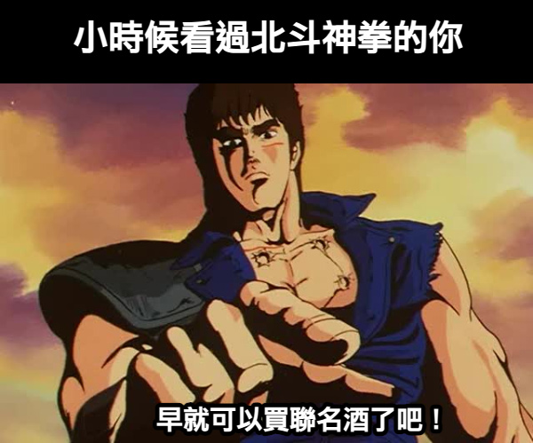 回看北斗神拳的誕生,已經度過了40個年頭,小時候看過北斗神拳的你,基本上都已經是可以買聯名酒的人了吧!(笑)