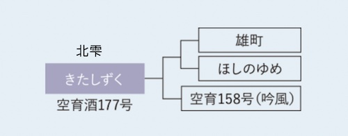 近年來北海道新品種酒米「北雫」於2014年正式頒布,由古代米雄町、北海道食用米 ほしのゆめ(暫譯:星之夢)以及吟風三支米種為親代交配而成,使用北雫釀造出的日本酒口感柔和、乾淨。