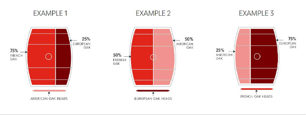 材質除了最簡單的美國與法國產區的分別之外,可以計算比例混何不同產區的木材,這樣甚至可以省去換桶的工序,提高熟成的穩定性。