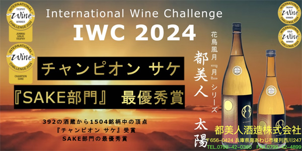恭喜「都美人 太陽」獲得2024年清酒組別的最高冠軍獎 Championship,這也是首次由兵庫縣的清酒獲得此獎項!