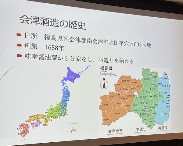 首先登場的是山之井 会津酒造的渡部景大先生,會津酒造的本家創業於1688年(元祿元年)當時仍是江戶幕府時期,是至今已經超過 300 年的古老藏,原先以釀製味噌與醬油為主,是後來分家後才開始酒造事業。