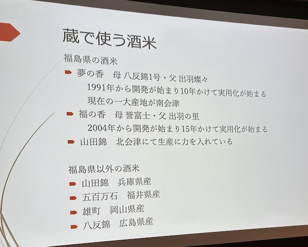 矢內先生大方分享他對福島酒風味發展的觀點,表示在10-15年前福島酒的聲勢其實並不如現在這麼如日中天,在當時許多人對福島酒的印象是容易有「雜味」。