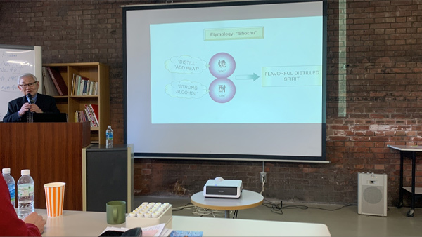 下午的課程進入到燒酎與泡盛。先由日本知名的燒酎講座大師,同時也是燒酎師匠協會理事長、鹿兒島大學的鮫島吉廣教授針對燒酎文化與歷史做了整體的解說。