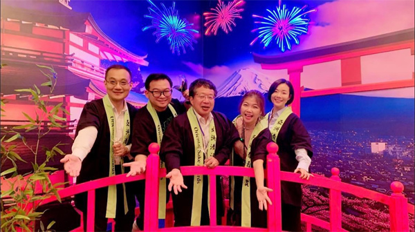 夜には一般消費者向けの「Sake Sensation Festival」もあります。今年の会場は昨年倍の広さで、日本の夏祭りをテーマにしていました。3日間で約28社の輸入業者が参加し、消費者は千種類近くの酒を試飲し、購入することもできす。私は先生である宇都宮博士が所属する日本酒造組合中央会のブースにて焼酎の解説を手伝いました。今回、台湾からは同業の友人や私の学生を含む団体が見学に訪れました。皆、このようなイベントが台湾でも開催されることを希望しており、台湾における日本産酒類市場を広げられる一方、業界全体にとっても勉強の良い機となり、業界の団結も強化できるチャンスと認識してます。