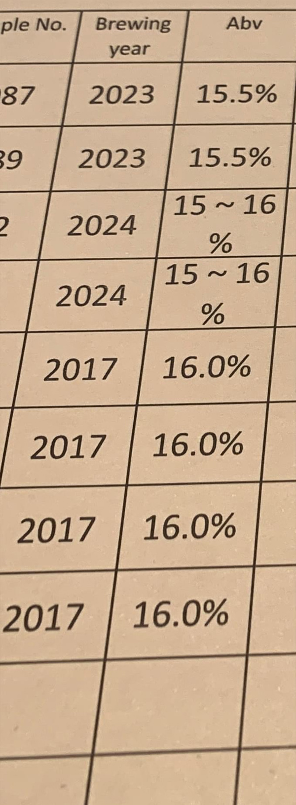 例如非常明顯地看到有許多2017-2023年份的作品,這些作品並非「古酒」或「熟酒」,而是酒造認為適當地熟成能讓整體酒款的表現更加立體與豐富層次。