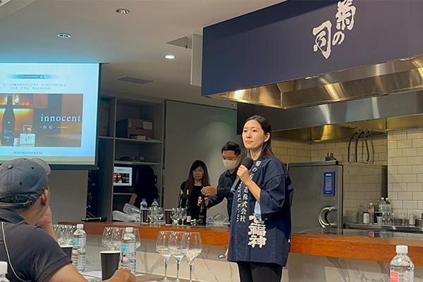 本次開元食品舉辦菊之司新品發表會,邀請到菊之司取締役室室長——山田貴和子主講,貴和子小姐同時也是目前社長的長女,在2021年時因家族收購了當時有破產危機的菊之司,她以27歲之姿進入菊之司,開始進行重振酒造經營。