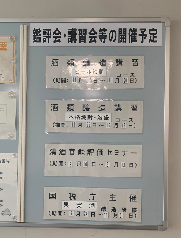這個講習會每年僅舉辦一次,時間大約落在九月第二週,上課地點在日本廣島縣東廣島市酒類總合研究所內,使用語言為日文,授課教師均為來自所內實際從事官能評價的博士研究員。