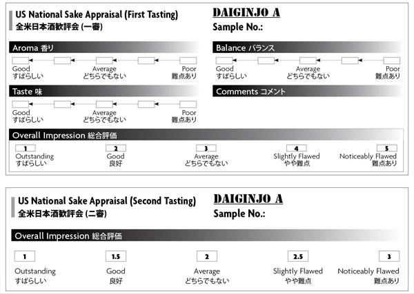 一審的評分表(上)與二審的評分表(下)。圖片來源:全米日本酒歓評会 U.S. National Sake Appraisal 官網