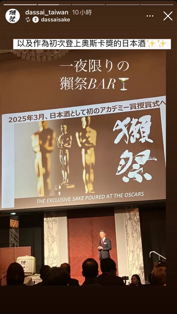 獺祭將在三月奧斯卡獎亮相!圖片來源:截自獺祭 dassai_taiwan