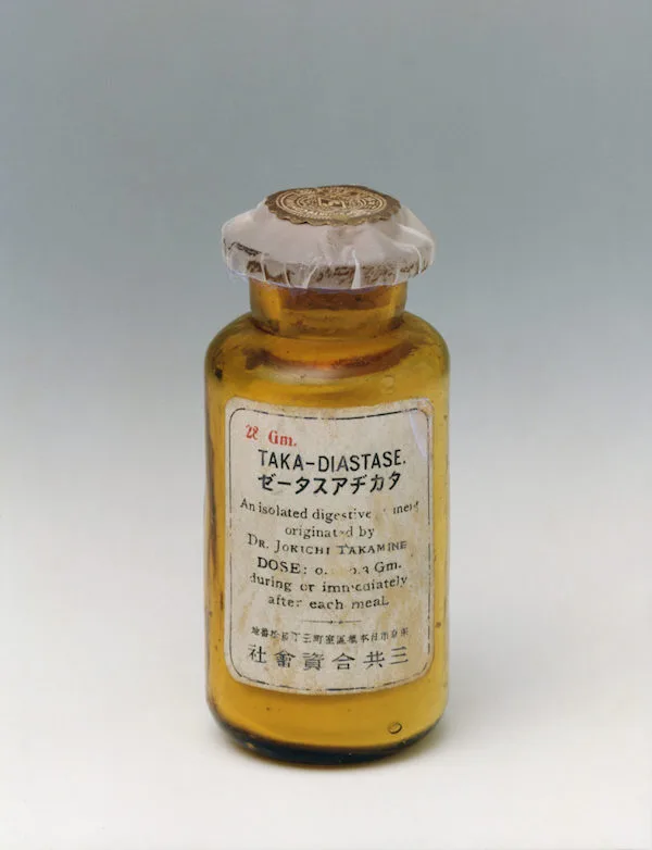 由三共合資會社販售的高峰澱粉酶,圖片來源:高峰讓吉博士研究會
