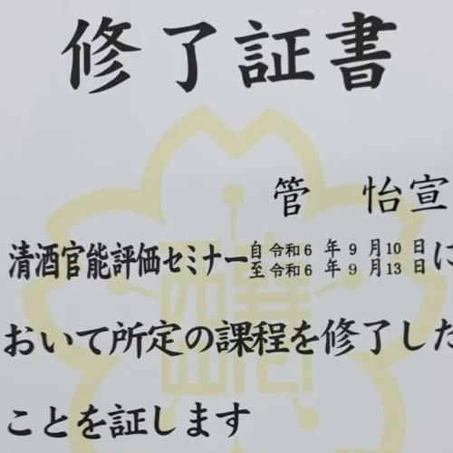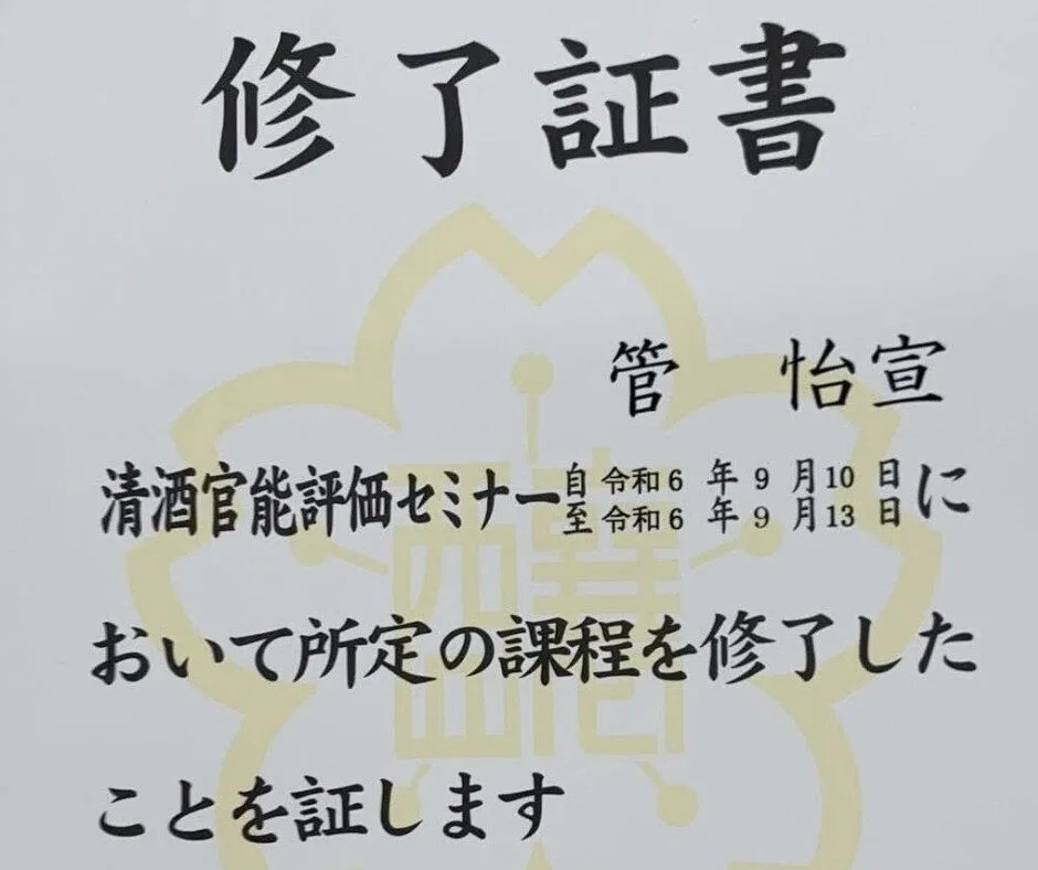 我有幸在2024年成功甄選上,成為第30期修了生,與來自日本各酒造的杜氏以及各地方政府清酒相關研究所研究員一起接受這個日本最高強度的品飲訓練,最後在同學群組也得知,第30期的24名學員中,僅有2名獲得全科目測驗合格,但尚處在審核小論文的階段。還好這樣每年都有理由去研究所朝聖開同學會。