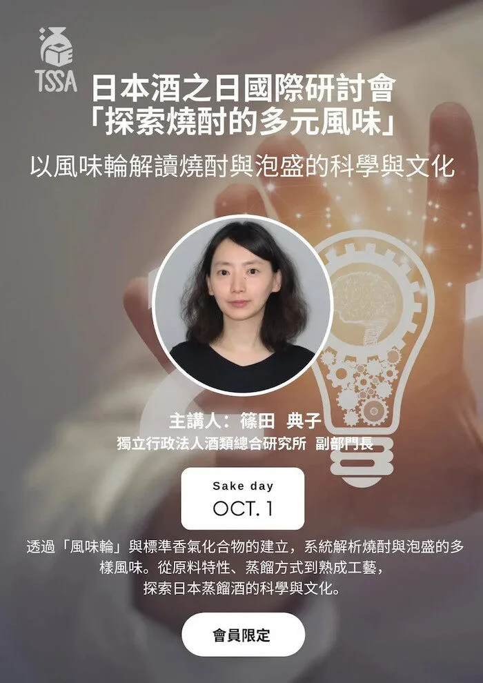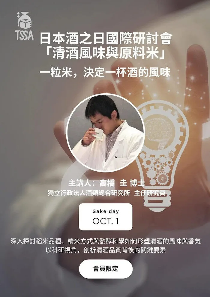 今年的 10 月 1 日「日本酒之日」特別意義非凡,由臺灣清酒暨燒酎研究協會(TSSA)主辦,邀請日本國立酒類綜合研究所(NRIB)專家來台進行專業的論壇演講, 並跨國連線日本酒造組合中央會,與全球各地同步乾杯!