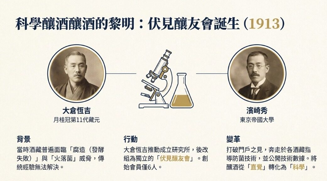 記得我在酒類總合研究所受訓時,看到許多官方講義的參考出處就是分別來自於伏見釀友會跟灘酒研究會,可見這兩個組織在日本釀造科學現代化進程中,扮演著不可或缺的角色。