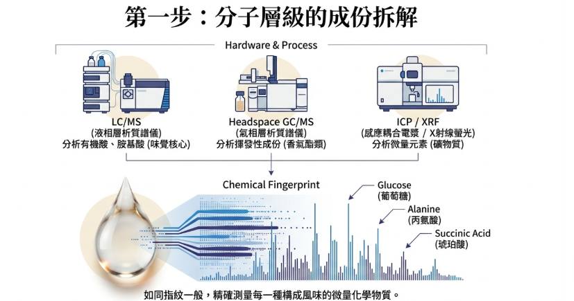 胺基酸:採用 LC(液相層析,配合柱前衍生化法),分析旨味與複雜度來源。