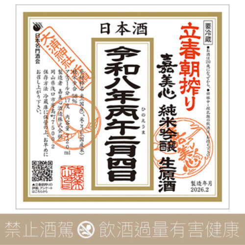 嘉美心 令和八年 立春朝搾 純米吟釀 生原酒 2026