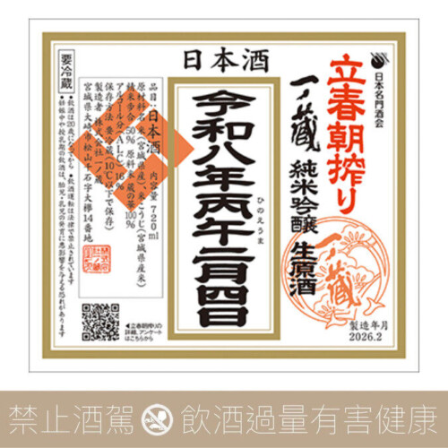 一ノ蔵 一之藏 令和八年 立春朝搾 純米吟醸 生原酒 2026
