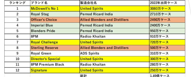 2022年印度品牌威士忌出貨量排名,世界名列前茅 印度威士忌崛起 明年要去印度做硫化物研究,大家聽到的反應都是一臉狐疑:「為什麼選印度?」
