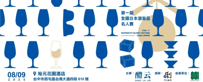 圖片來源:醴云Sake La Vie 由台灣中部專業日本酒選品品牌「醴云 Sake La Vie」主辦、「台灣國際唎酒協會」協辦、並獲得「SSI INTERNATIONAL」後援支持的【第一屆全國日本酒盲品名人賽】將在台中「裕元花園酒店」盛大舉行。這是台灣首度以專業賽事形式舉辦的日本酒盲品競賽,邀請全台熱愛日本酒的品飲高手,以盲品方式同場較勁,挑戰舌尖與記憶的極限。