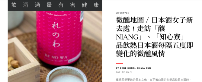 大大感謝 VOGUE Taiwan ❤️ 【微醺地圖/日本酒女子新去處!走訪「釀NIANG」、「知心寮」品飲熱日本酒每隔五度即變化的微醺】風情 : 全文連結 由此入 這幾天天氣轉涼,店裡有熱的台灣甘酒、CUPSAKE 更有許多純米酒的熱燗,歡迎來感受溫度帶來的香氣與口感變化。 #第一次看到店名被報導有點感動 瓶蓋工廠台北製造所 #釀NIANG —Welcome — 愛上日本酒-交流會: https://bit.ly/30DjBeD 全台灣氣氛最熱鬧的日本酒討論平台 愛上日本酒YouTube: https://bit.ly/3fG5Gep 講講清酒故事,求訂閱加開小鈴鐺 (文章出自愛上日本酒臉書:https://reurl.cc/k0kbzK)