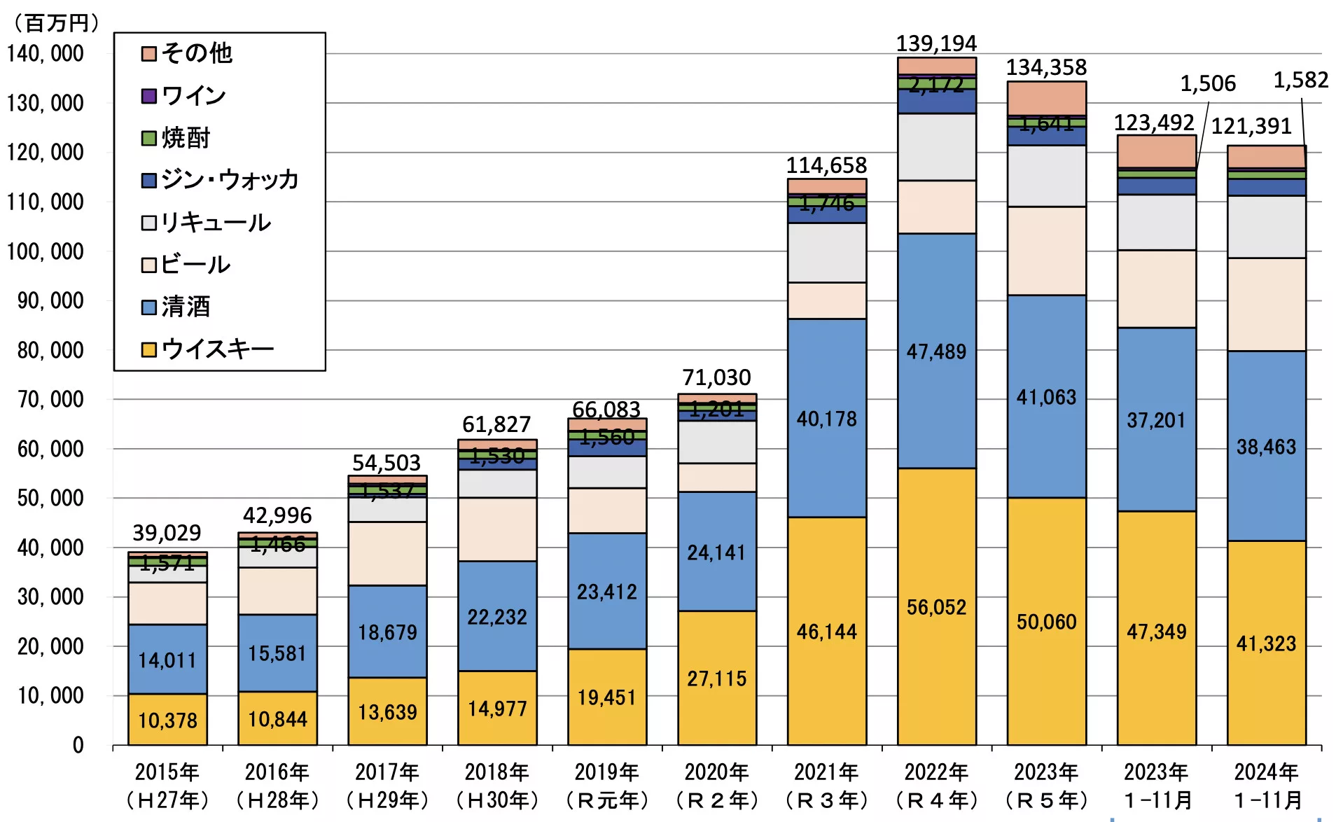 日本酒類輸出的分類方式 財務省與國稅廳大樓,圖片來源 Wikipedia 日本國稅廳每月依據「財務省貿易統計」,發布日本酒類出口數據,詳細分類涵蓋19個類別,從酒種、製程到包裝體積,展現日本酒類出口市場的多樣性: