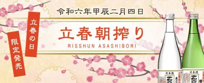 立春是二十四節氣的第一個節氣,在農業社會裡代表冬季結束,萬物復甦,即將進入風和日麗的春天。 圖片來源:日本名門酒會 立春朝搾的由來 「立春朝搾り」是一個由日本名門酒會(Japan Prestige Sake Association)發起的限定品活動,參加的會員酒造們從進入立春的夜晚便開始動員酒造全體,從杜氏團隊到業務、行政人員,也包括地方相關人士(多半是地方上的經銷商或酒販店)將清酒壓榨、上槽、裝瓶、貼標、裝箱出貨,有些酒造甚至會請神社神官前來舉行祈福儀式。
