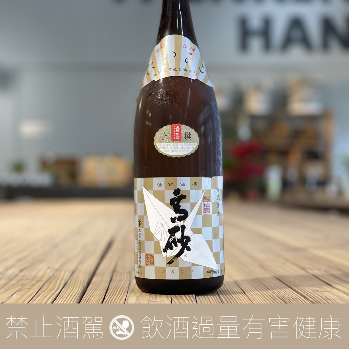 「高砂」與「而今」相同出身於三重縣木屋正酒造,標明上撰的復古酒標突顯出地元流通品的特色,本作品具有濃郁醇厚的風味,無論是以冷酒飲用紮實平易近人,或熱燗後突顯米旨圓滑風味,都能展現不同風采。其實高砂誕生於而今之前,但因坊間太多與高砂命名類似的酒款,第六代藏元兼杜氏大西唯克先生在接班後為了振興酒造暫停使用「高砂」作為品牌,重新打造了現在當紅的「而今」,是直到2017年木屋正酒造推出創業200周年特別企劃,讓高砂這個名稱重新出現在市場上。