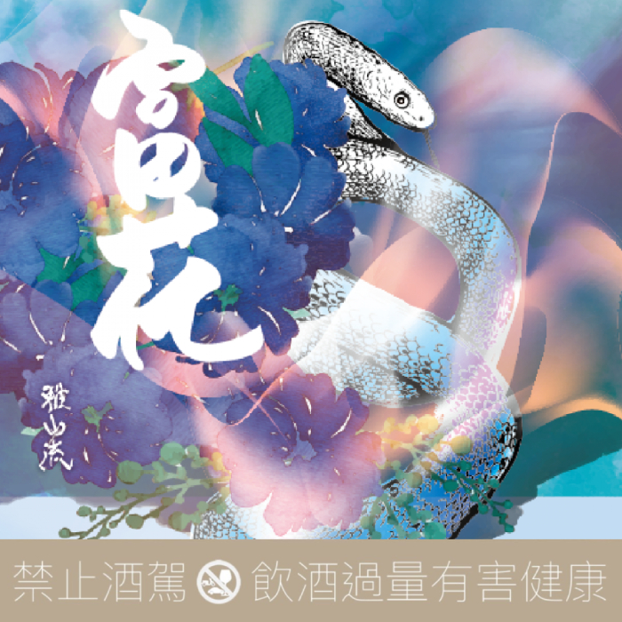 映入眼中華麗盛開的花如同開瓶後散發的華麗香氣,口感清爽、質感高雅,搭配外盒明亮吉(橘)光,照耀這條帶來財富與豐收的蛇,是蛇年送禮、聚餐最耀眼的祝福。