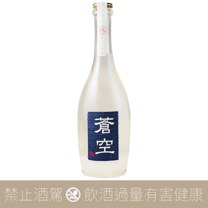 「蒼空」瓶身酒標以布料印製,並以軟木塞蓋取代傳統瓶蓋,每瓶容量設定為500ml(一般清酒為四合瓶720ml),年產僅450石,是清酒愛好者眼中的逸品。