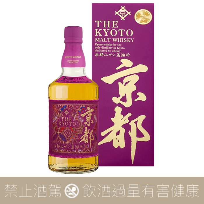 京都威士忌 西陣織紫帶 麥芽香裡飄散著不多不少剛剛好的煙燻香及甜味,表現出高貴優雅的風格,職人的酒液勾兌技術,嚴選的多種麥芽原酒所呈現出最原始的麥芽酒香。