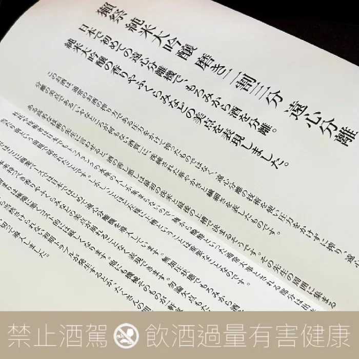 早期透過遠心分離技術所得的二割三分酒液因其味道的透明感過於細膩,為增加酒質厚重感,皆以遠心分離技術無壓釀榨得到的酒液與傳統清酒釀榨得到的酒液調和而成。