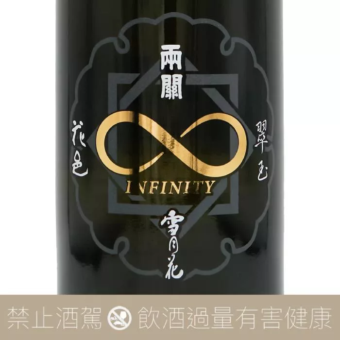 酒標上印有特約店限定品牌「花邑」「翠玉」以及一般流通品牌「兩關」「雪月花」,並且使用代表無限的符號「∞」,象徵著兩關酒造的無限可能,瓶身設計展現了這一理念。